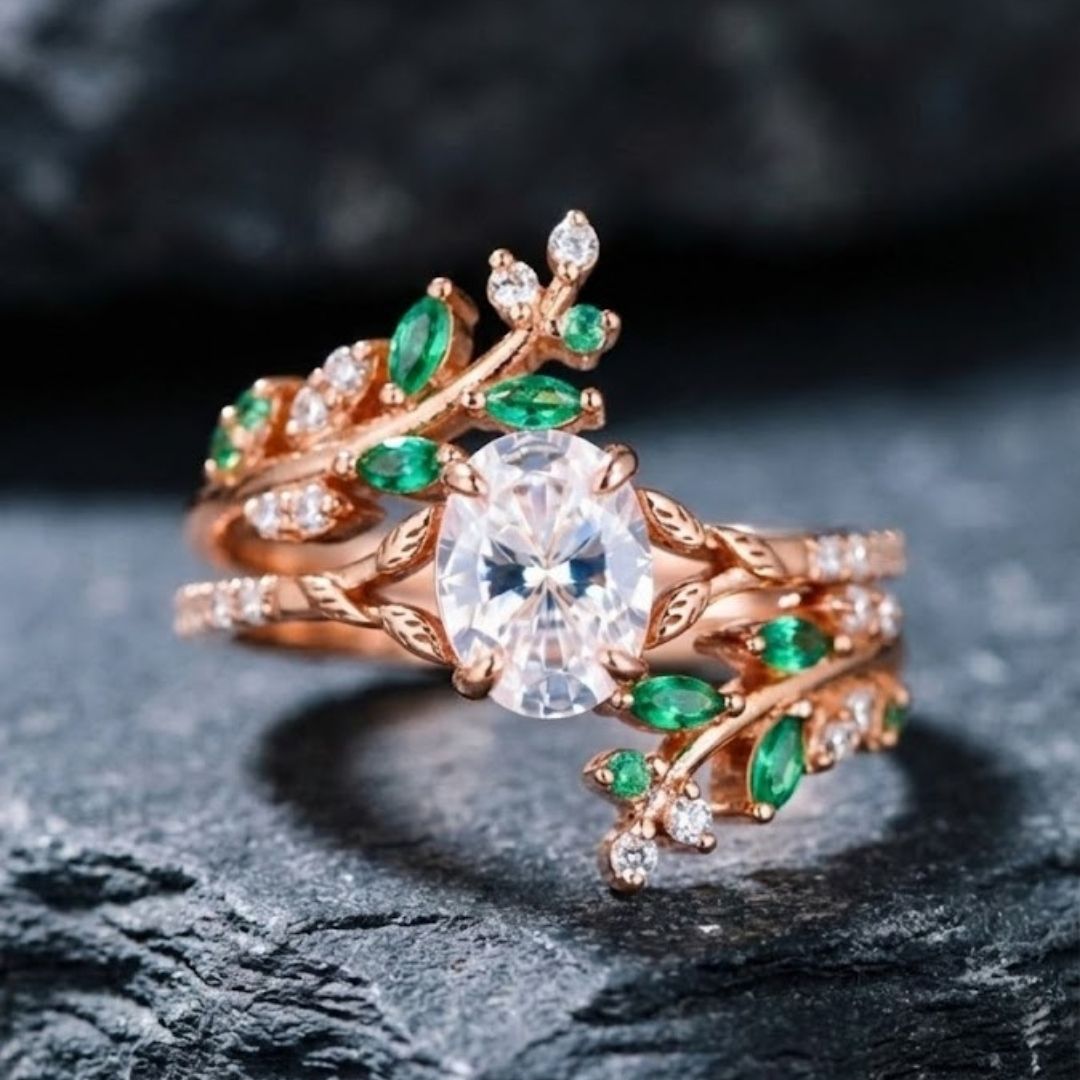 - Doğanın büyüsünden ilham alan Aurora Blaze, Rose Gold dokusunun sıcaklığını yeşil taşların büyüleyici ışıltısıyla buluşturur.