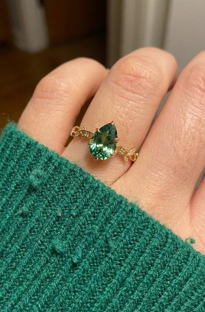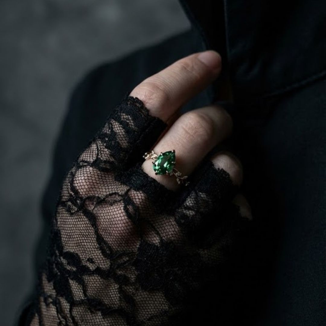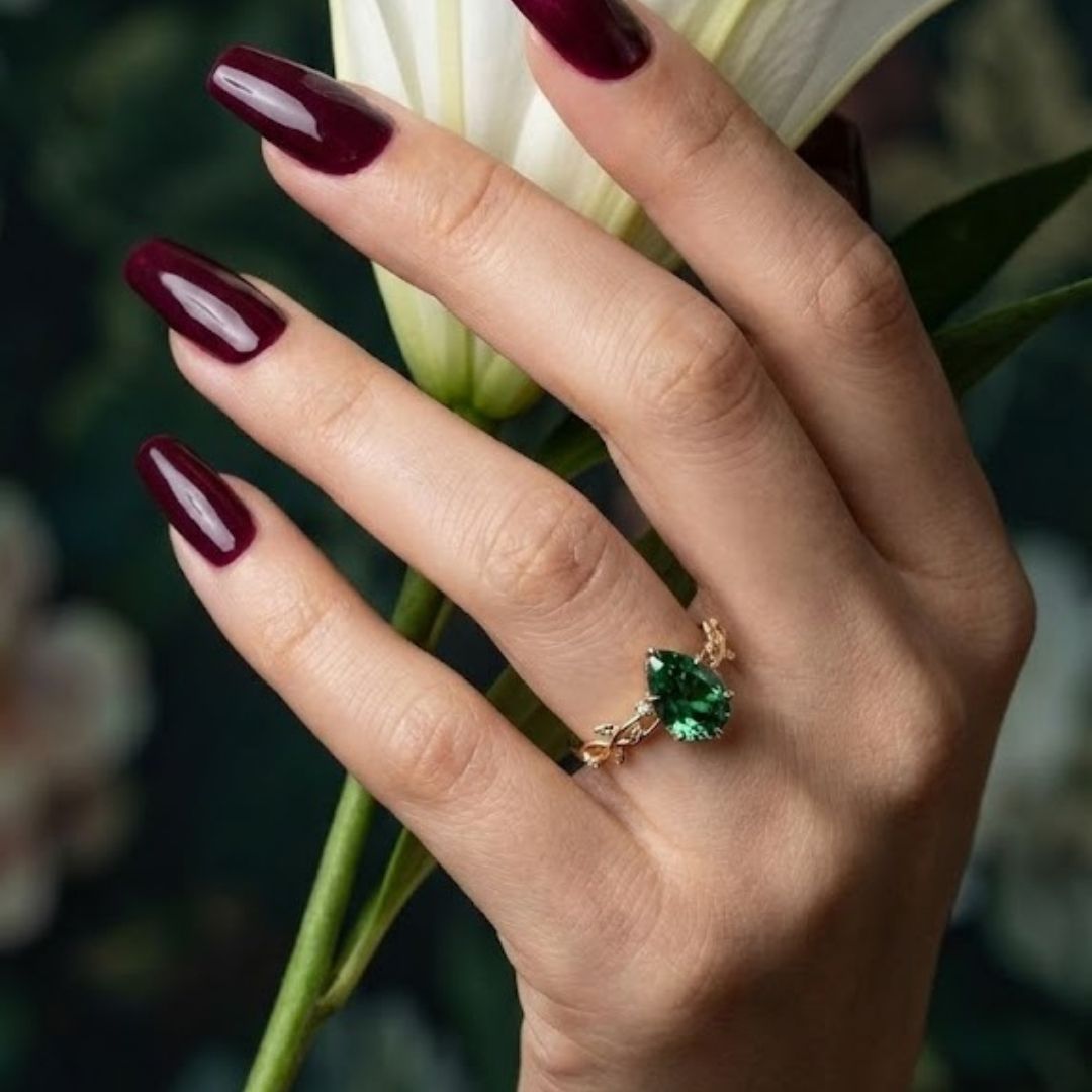 - Yeşilin en asil tonunu doğanın dokusuyla buluşturan Emerald Grove, damla kesim taşı ve zarif yaprak detaylarıyla parmaklarınızda büyüleyici bir orman esintisi yaratır.