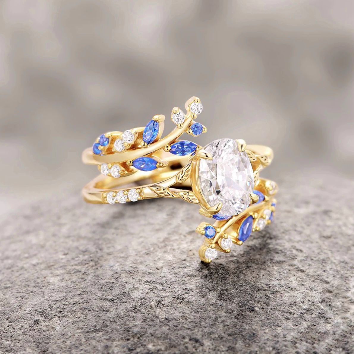 Golden Blaze, zarafetin altın ve mavi taşlarla buluştuğu eşsiz bir tasarım. Doğadan ilham alan detaylarıyla bu yüzük, her anınıza büyüleyici bir dokunuş katacak. Dalların inceliği ve safir taşların ışıltısı, size ve sevdiklerinize unutulmaz bir şıklık sunuyor.