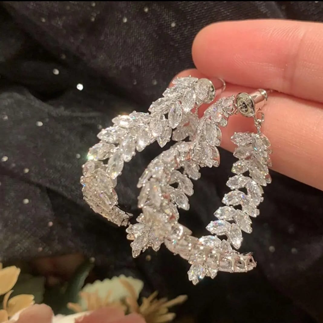 - Parlak gümüş renkli taşlarla süslenmiş, kalp şeklini alan zarif tasarım