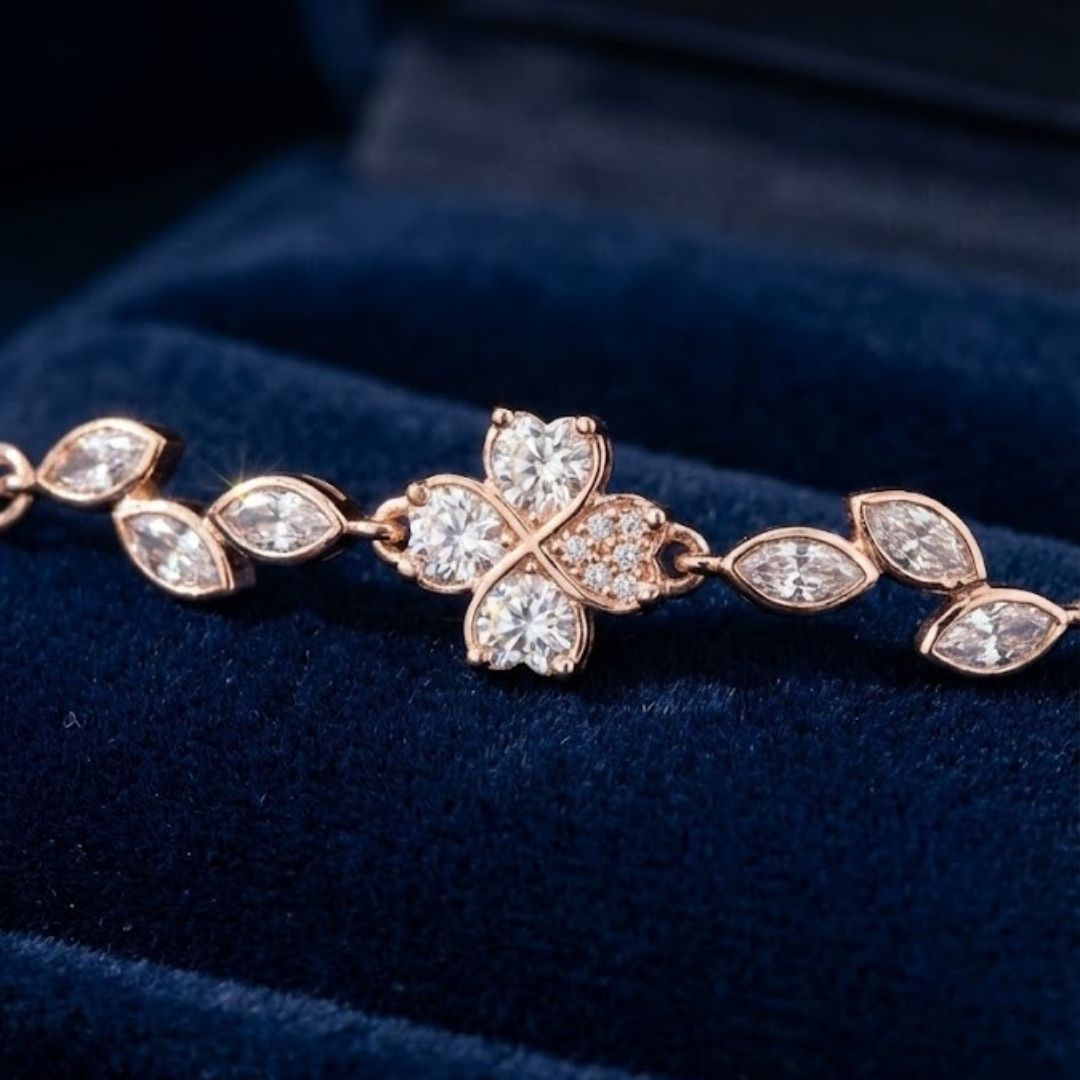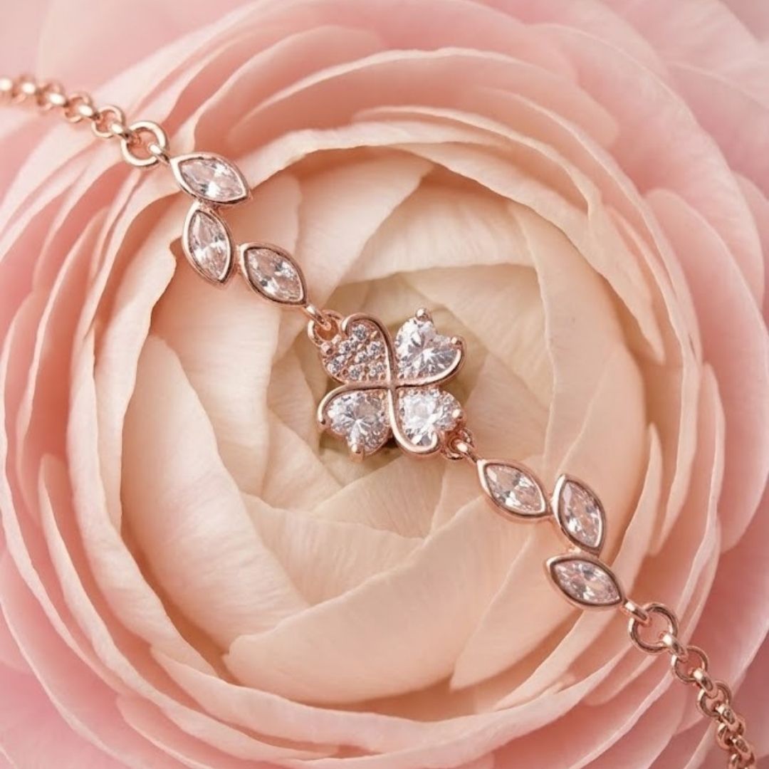 Zarif yonca motifi, hayatın dört güzel yönünü — aşkı, umudu, inancı ve şansı — temsil eder.