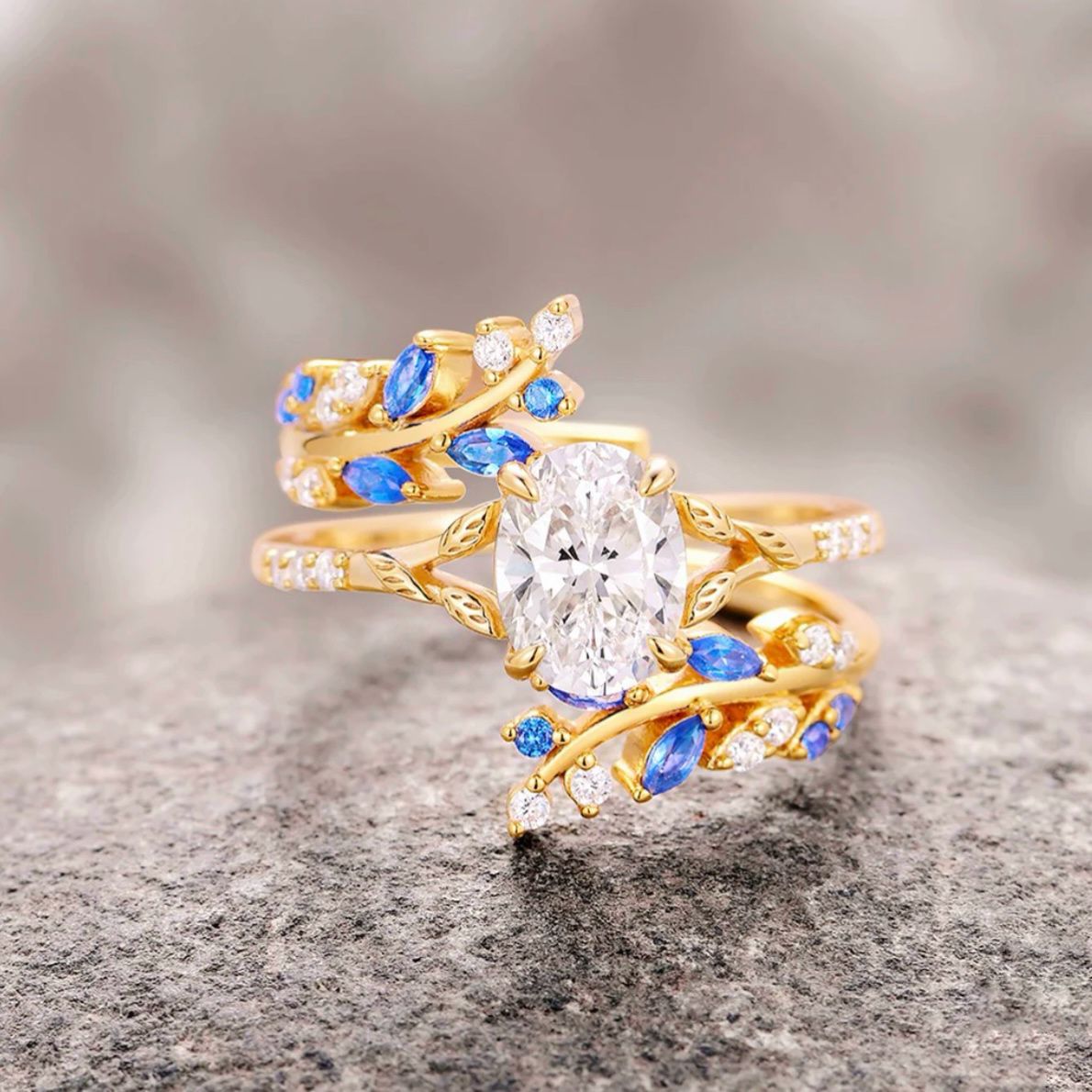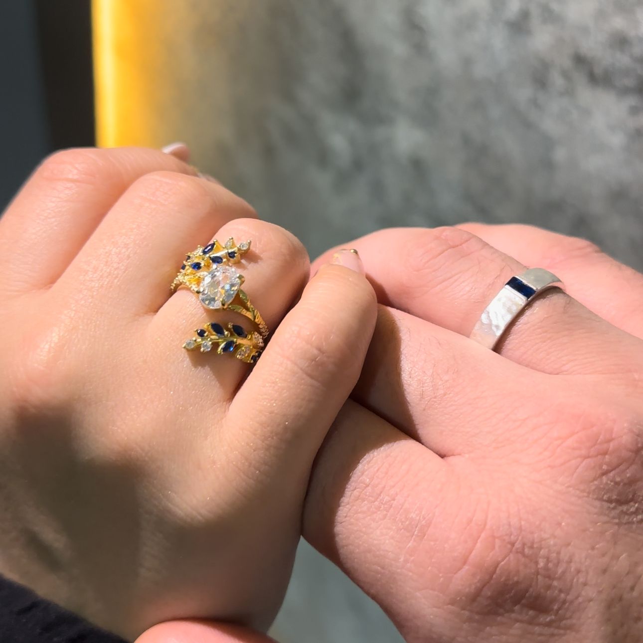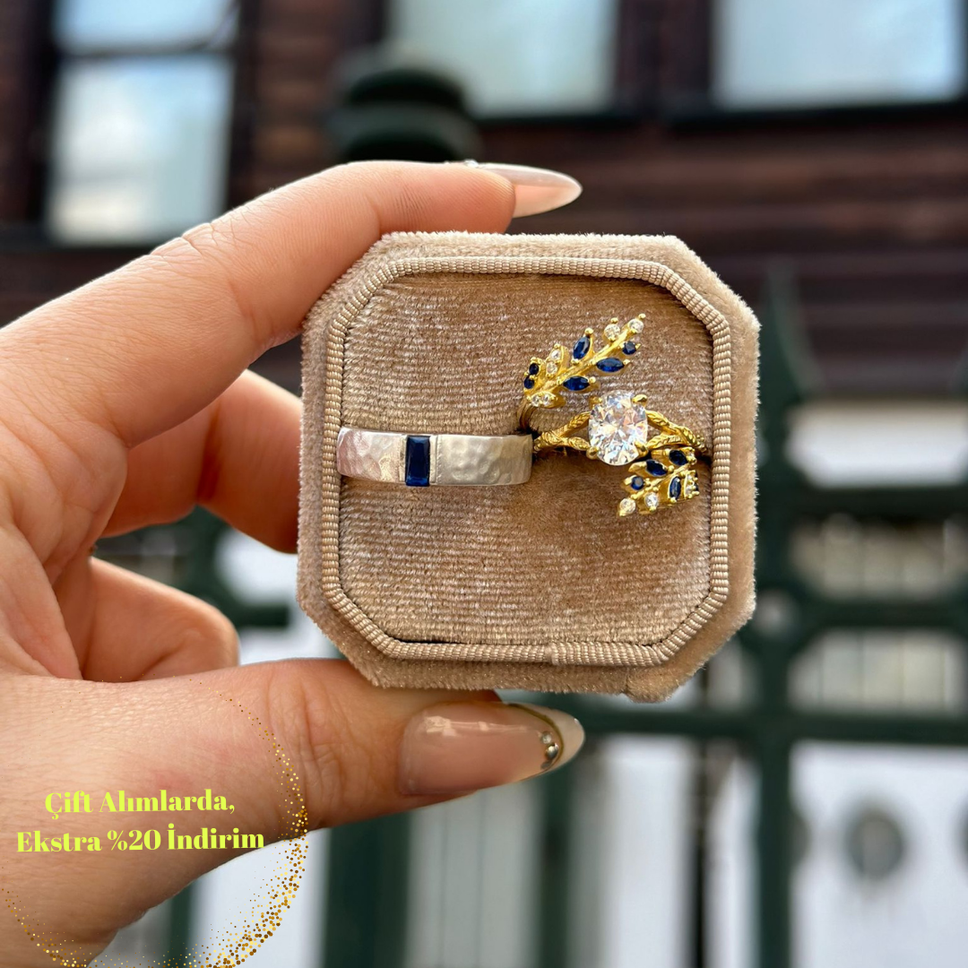 Golden Blaze, zarafetin altın ve mavi taşlarla buluştuğu eşsiz bir tasarım. Doğadan ilham alan detaylarıyla bu yüzük, her anınıza büyüleyici bir dokunuş katacak. Dalların inceliği ve safir taşların ışıltısı, size ve sevdiklerinize unutulmaz bir şıklık sunuyor.