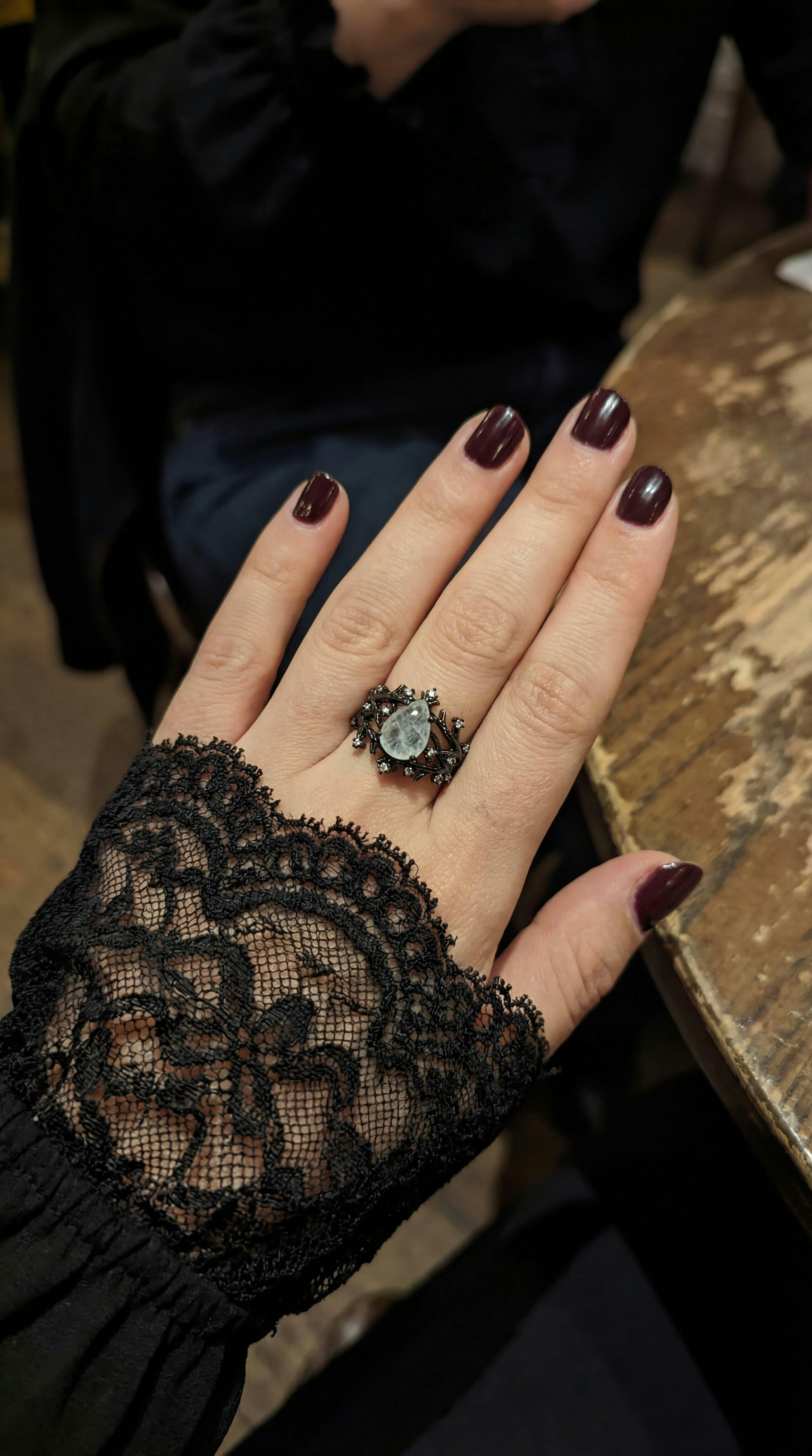 Tam bi cadı yüzüğü 🖤 gotik tarz sevenler kacırmasın. siyah rengiyle ay taşının uyumu efsane olmus bayıldım.