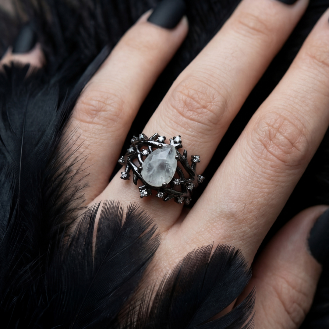 Luna Noir Yüzük – Gecenin ve Ay Işığının Mistik Dansı
